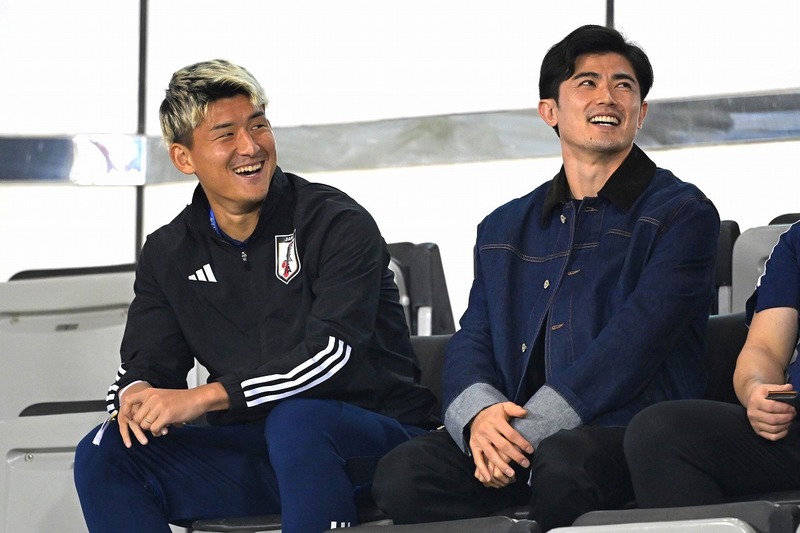 via 日本代表DF谷口彰悟が2戦連続でスタンド観戦! ベンチ外の西尾隆矢と並んで笑顔も【U-23アジア杯】 – サッカーダイジェストWeb